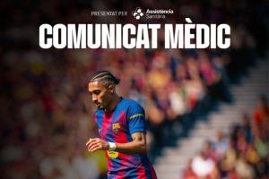 缺席多场关键战!官方:拉菲尼亚右大腿股二头肌受伤 预计缺阵5周