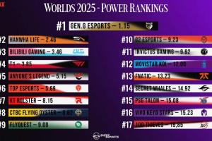 直播吧10月13日讯 外媒sheep esports发布了S15全球总决赛战队实力排名,GEN、HLE、BLG、T1前四,TES第六、iG第十一