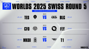 直播吧10月24日讯 S15瑞士轮第五轮抽签仪式结束,根据规则第五轮抽签仪式依旧没有同赛区规避,但还是不会抽到交过手的队伍。