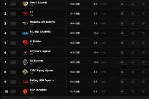 直播吧3月10日讯 拳头官网更新世界赛战队实力排名,其中GEN第一,T1第二,HLE在未能晋级LCK CUP季后赛的情况下依旧第三。
