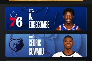 直播吧10月30日讯 NBA官方公布了最新一期的NBA新秀榜,埃奇库姆排在第一。而灰熊的锡德里克-科沃德排名第二,迪伦-哈珀排名第三。