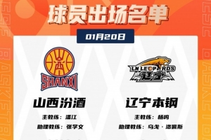 直播吧1月20日讯 今晚19:35,山西主场迎战辽宁,赛前大名单出炉。