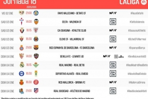 直播吧12月2日讯 西甲官方公布第18轮联赛时间安排,以下是具体对阵信息。