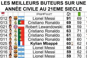 直播吧12月02日讯 2025年接近尾声,皇马前锋姆巴佩已经在本年度打进了60粒进球,在21世纪自然年进球榜可以排到并列第6位。