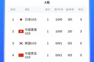 直播吧12月18日讯 U15东亚杯首战,U15国足无缘开门红,0-3输给日本U15,下一轮的对手是同样首轮失利的韩国U15队。