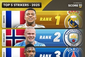 直播吧12月31日讯 2025年世界足坛精彩纷呈,但也即将拉下帷幕。Score90媒体评选出各个位置的前5最佳球员,其中包括最佳中场、最佳进攻型中场、最佳防守型中场、最佳左边锋、最佳右边锋、最佳前锋、最佳左后卫、最佳右后卫、最佳中后卫、最佳门将。