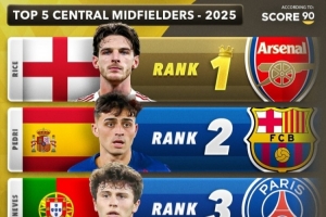 直播吧12月31日讯 2025年世界足坛精彩纷呈,但也即将拉下帷幕。Score90媒体评选出各个位置的前5最佳球员,其中包括最佳中场、最佳进攻型中场、最佳防守型中场、最佳左边锋、最佳右边锋、最佳前锋、最佳左后卫、最佳右后卫、最佳中后卫、最佳门将。
