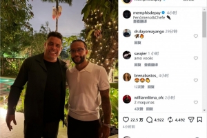 德佩社媒晒出与大罗的合照,配文:“现象(大罗绰号)&老大。”