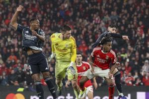 直播吧01月29日讯 欧冠联赛阶段末轮,本菲卡vs皇马,比赛补时的最后阶段,本菲卡门将特鲁宾头球破门,本菲卡4-2领先,凭借1个净胜球的优势,力压马赛,压哨晋级附加赛。