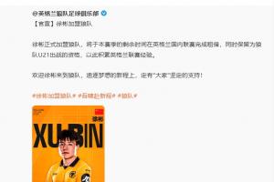 直播吧01月30日讯 英超球队狼队官方消息,U23国足队长、21岁青岛西海岸中场徐彬自由身转会加盟。