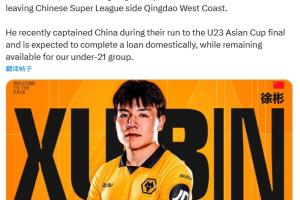 直播吧01月30日讯 狼队今日宣布中国球员徐彬加盟。官方公告中还确认,徐彬将于本赛季的剩余时间在英格兰联赛完成租借,同时保留为狼队U21出战的资格,以此积累英格兰联赛经验。