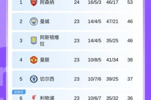 英超积分榜:阿森纳先赛7分领跑,稍后切尔西、利物浦出战