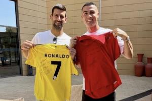 去年12月的环足奖颁奖典礼,德约科维奇荣膺年度环球体育奖,C罗为其颁奖。德约发表获奖感言时表示:“我没想到会是这样(能够获奖)。我来这里是为了庆祝足球运动员们度过了多么精彩的一年。我们(我和C罗)相识于很多年前,当时他来看我比赛。他的到来既给了我额外的压力,也激励着我。感谢你的发言,也感谢你视我为朋友。我认为C罗激励着我。希望我们俩能同时达成目标,他实现1000球里程碑,我达成25个大满贯冠军。”