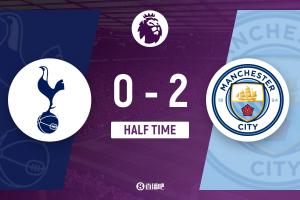 曼城2球领先!塞梅尼奥破门,B席助攻!第45分钟,热刺后场传球被断,罗德里直传,B席飞身横传转移,无人盯防的塞梅尼奥捅射得手,热刺0-2曼城!↓