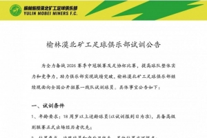 榆林漠北矿工俱乐部发布试训公告:有高级别联赛出场经历者优先