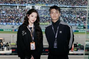 蒯纪闻现场观战F1,与欧阳娜娜合照