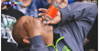 曼城打进第三球后,转播镜头对准了看台的一名曼城球迷,他拿着印有阿森纳标志的水瓶疯狂嘲讽式庆祝。